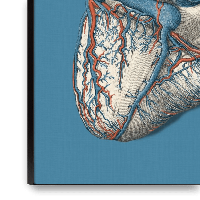 Vintage-Illustration eines menschlichen Herzens - auf blauem Hintergrund.