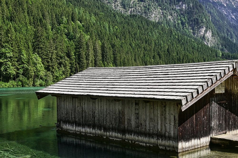 Das Bootshaus am Jägersee in den österreichischen Alpen.