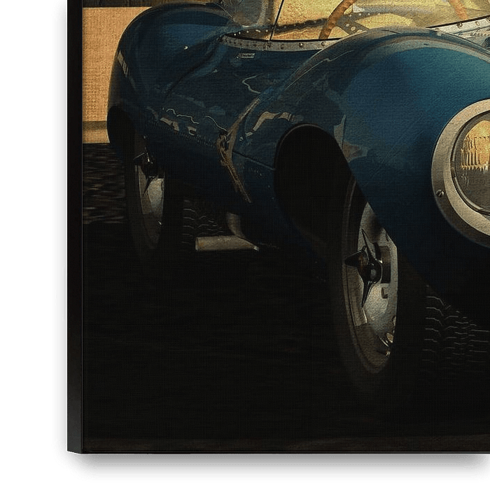 Bestelle dieses Popart-Wandbild Jaguar Typ D an einer alten Tankstelle von Jan Keteleer als Reproduktion auf Leinwand, Alu-Dibond, als Poster, Fototapete oder Acrylglasbild.