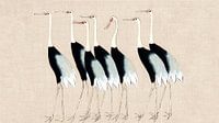 Japanische Kraniche in einer beruhigen Darstellung als Malerei auf angenehmen einfarbigem Hintergrund mit tiefer Vintage Textur.
