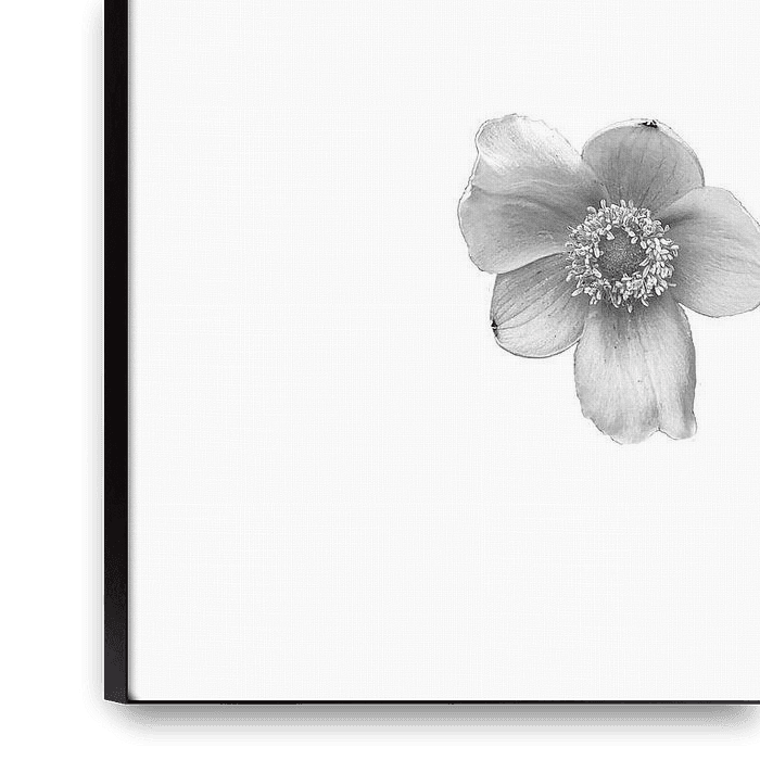 Bestelle dieses Landschafts-Wandbild Japanische Anemonen in Schwarz und Weiß von Piet de Winter als Reproduktion auf Leinwand, Alu-Dibond, als Poster, Fototapete oder Acrylglasbild.
