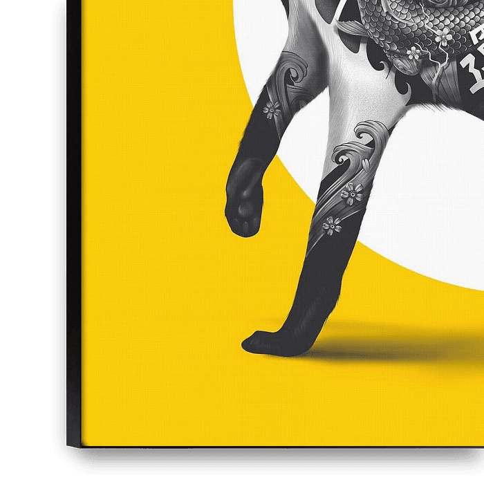 Bestelle Japanische Katze Tattoo Gelb von Mark Harrison als Reproduktion auf Leinwand, Alu-Dibond, als Poster, Fototapete oder Acrylglasbild.