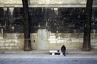 Trump spielt a la Miles Davis auf einer Bank an der Seine in Paris.