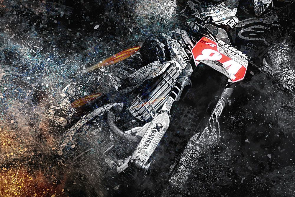 Motocross, wo der Lärm, der Gestank und der Staub ein wichtiger Teil des Spektakels sind.