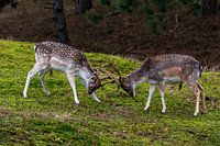 In den Amsterdamer Wasserversorgungsdünen sieht man viele Damhirsche. Es ist ein schöner Anblick, wenn sie mit ihrem Geweih klappern.