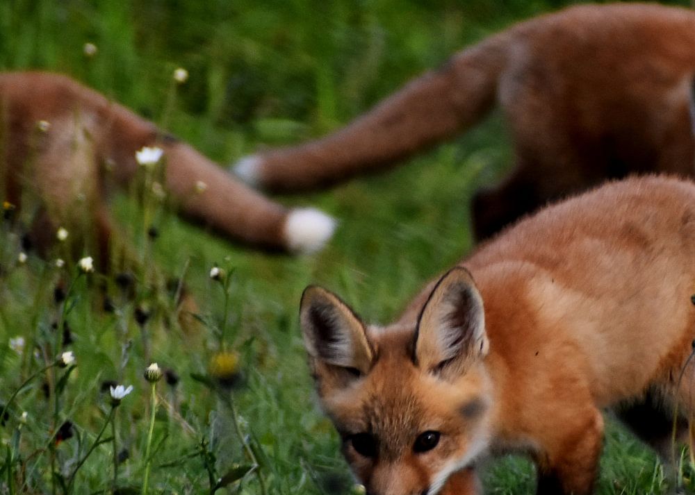 Junge Füchse im Frühling, Sainte-Apolline, Quebec, Kanada