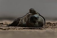 Ein junger Grey Seal Welpe am Strand in England.