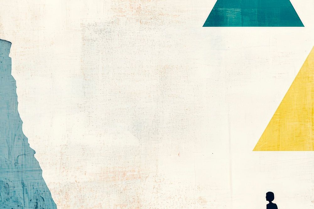 Ein harmonisches Zusammenspiel aus sanften Blautönen und eindrucksvoller geometrischer Kunst zieht den Betrachter in seinen Bann. Ein Silhouette von Kind und Hund, die am Ufer stehen, strahlt Freiheit und Abenteuer aus. Diese zeitlose Komposition verleiht dem Wohnzimmer eine beruhigende Atmosphäre und regt die Fantasie an, während sie gleichzeitig zum Entspannen einlädt.