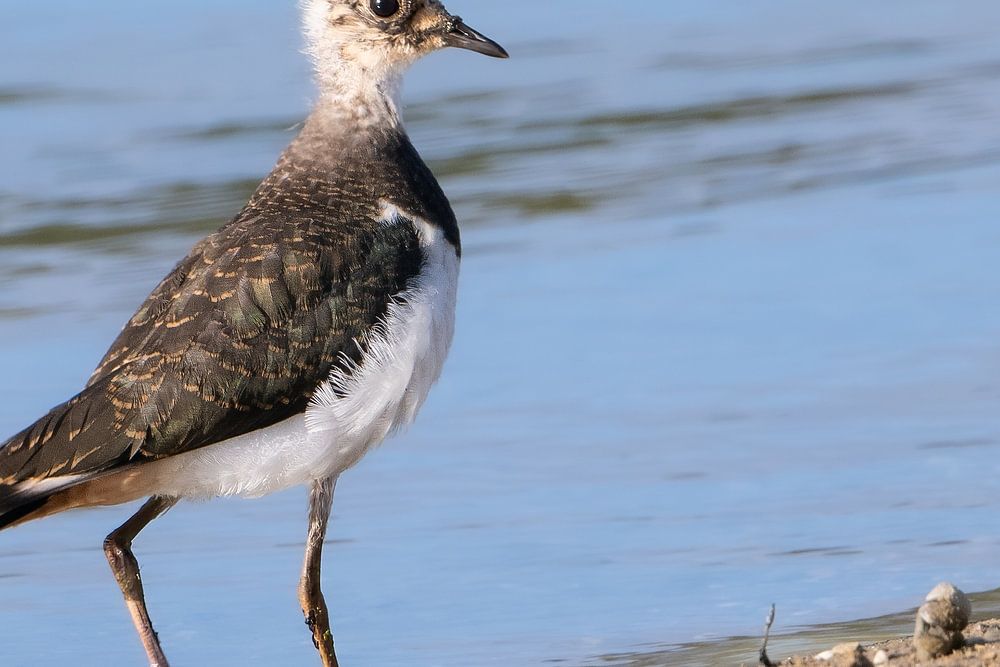 Stolz, aber auch ein wenig ängstlich und unbehaglich betritt der junge Kiebitz die weite Welt. Die Eltern flogen immer noch umher, um eventuelle Feinde zu verjagen.