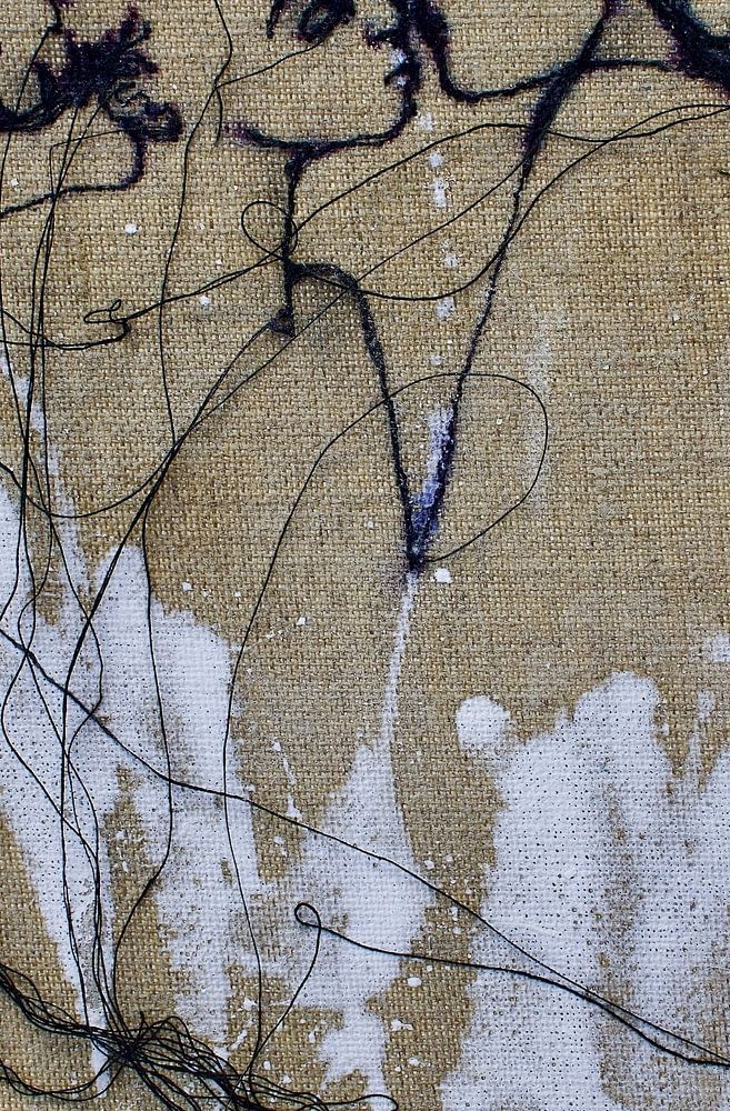 Der schwarze Faden spielt die Hauptrolle in meinen Werken, inspiriert von den Momenten des Lebens, hoffe ich, dem Betrachter einen Moment oder ein Gefühl des Wiedererkennens zu geben, eine innere Erfahrung, etwas, das einen in seine eigenen Gedanken wandern lässt. Meine losen Fäden stehen für Wachstum & Veränderung. Diese bewegen sich mit Wärme & Wind & können nach eigenem Empfinden auf die Leinwand gelegt werden. Ich liebe das Reine, die Materie & die Textur.