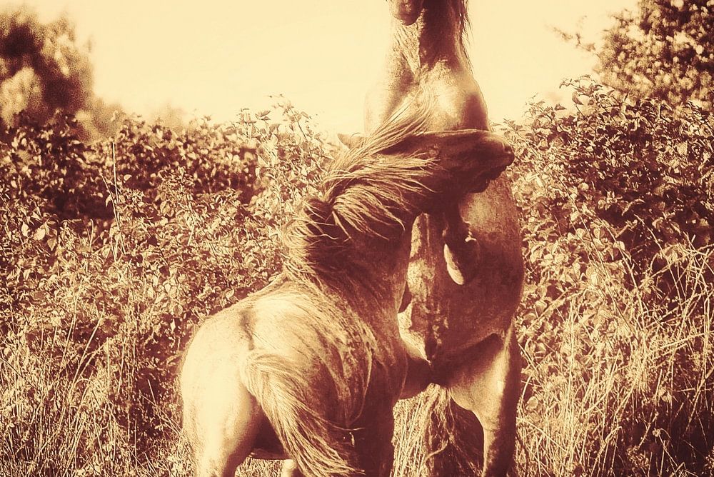 Bei einem Spaziergang durch den Wald mit meinem Hund Moon treffe ich auf die Wildpferde.