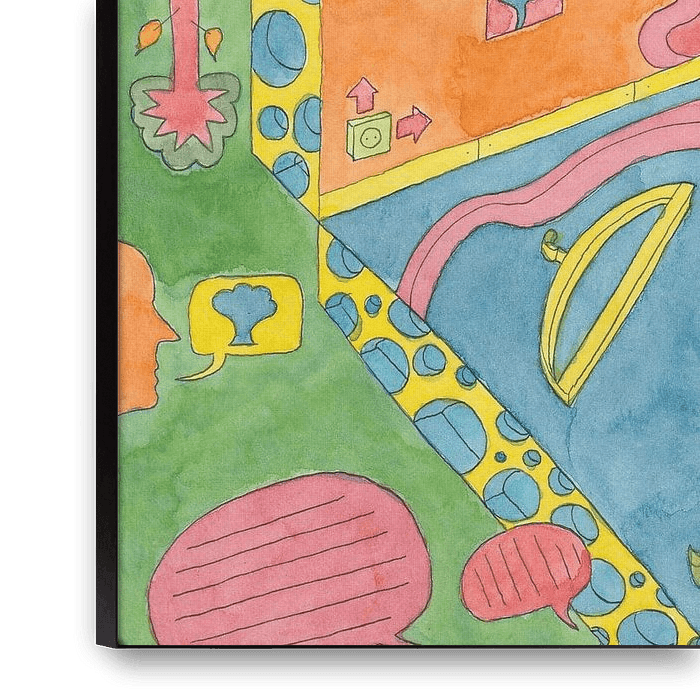 Ihre gewählte Kunst auf Leinwand, gespannt in einem Aluminiumrahmen. Schnell und einfach austauschbar für eine frische Ausstrahlung und ganz nach Ihren Wünschen.