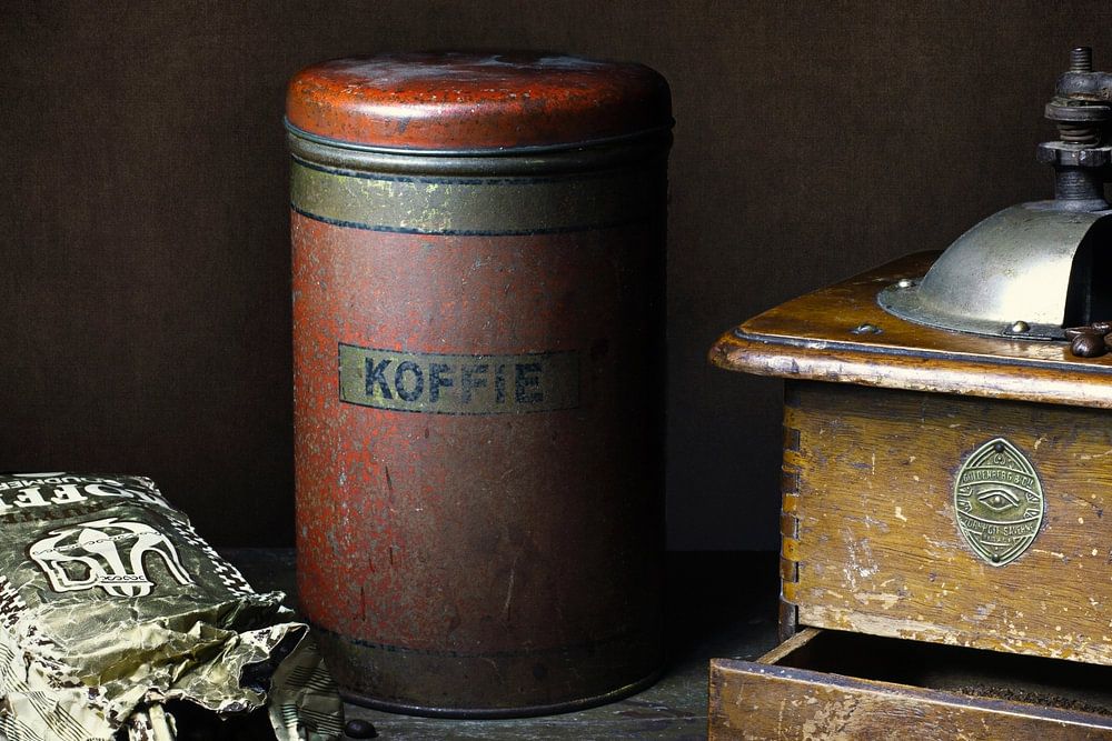 Stilleben der alten Kaffeemühle mit Rembrandt Licht.