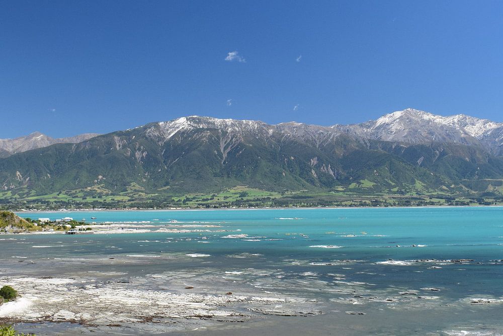 Reden genoeg om Kaikoura te bezoeken: helderblauwe lucht, kraakheldere wateren en prachtig uitzicht op de bergen!
