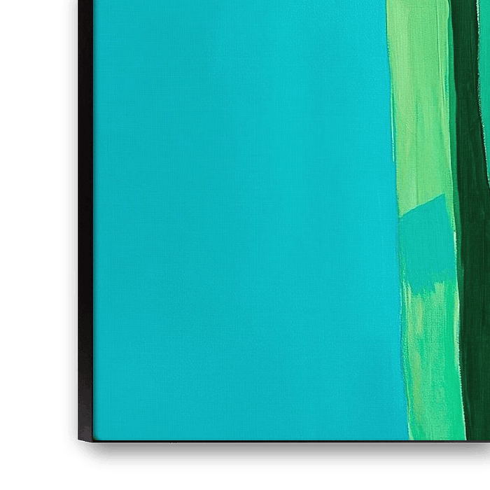 Die leuchtenden Grüntöne der stilisierten Kaktusse vor einem sanften Türkis schaffen eine erfrischende Atmosphäre, die an sonnige Tage in der Wüste erinnert. Diese moderne Komposition bringt einen Hauch von Natur in dein Zuhause und eignet sich hervorragend für das Wohnzimmer oder die Küche, um Lebensfreude zu verbreiten.
