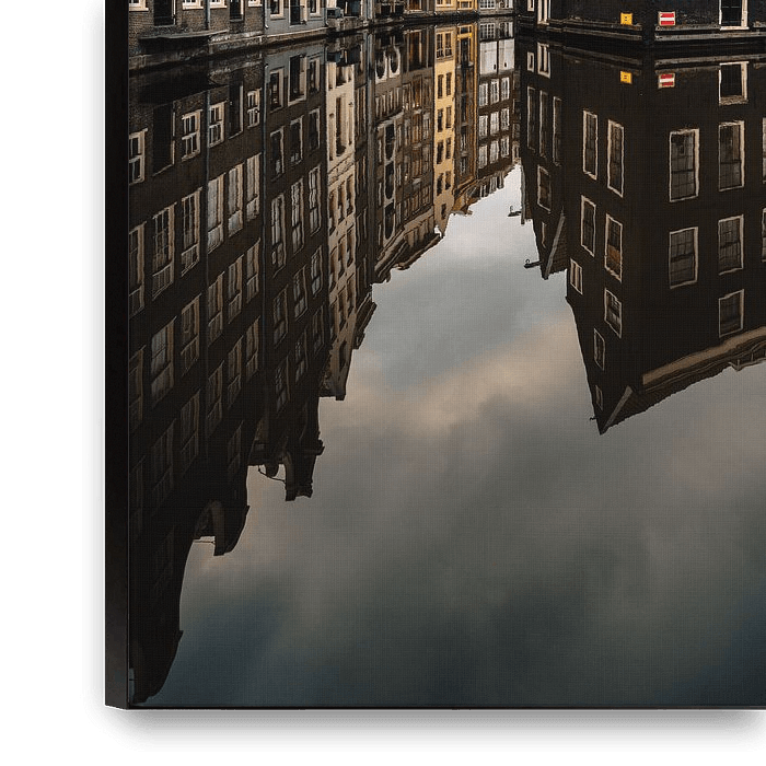 Bestelle das Foto Kanal und alte Häuser in Amsterdam am Oudezijds Voorburgwal von Lorena Cirstea als Reproduktion auf Leinwand, Alu-Dibond, als Poster, Fototapete oder Acrylglasbild.