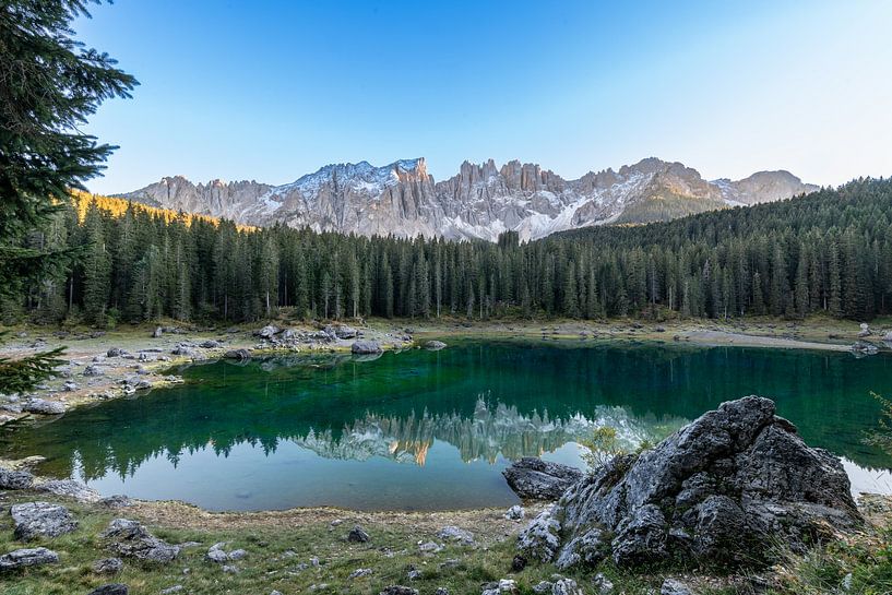 Bestelle dieses Landschafts-Wandbild Karersee von Lex van Doorn als Reproduktion auf Leinwand, Alu-Dibond, als Poster, Fototapete oder Acrylglasbild.