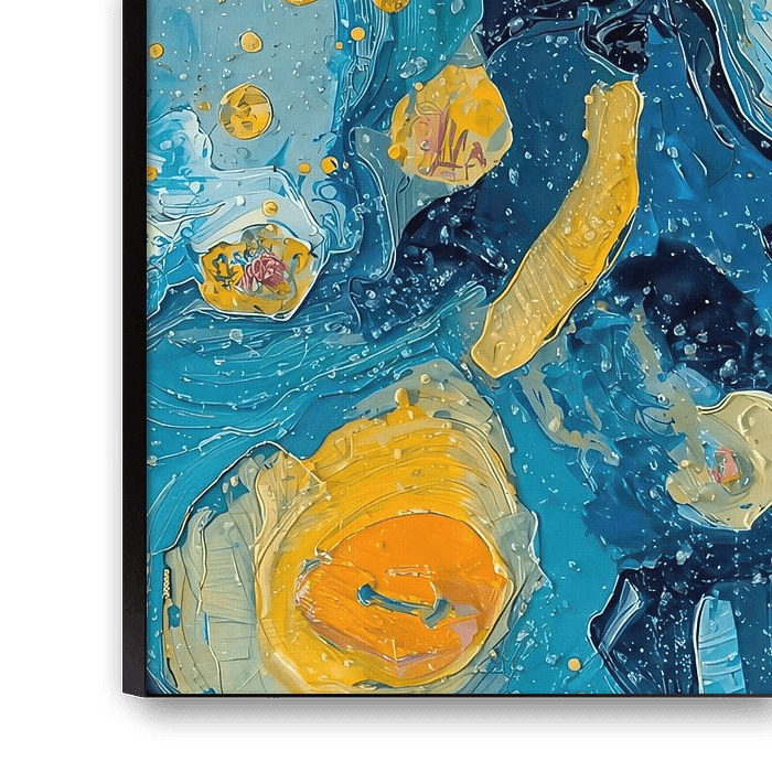 Ihre gewählte Kunst auf Leinwand, gespannt in einem Aluminiumrahmen. Schnell und einfach austauschbar für eine frische Ausstrahlung und ganz nach Ihren Wünschen.