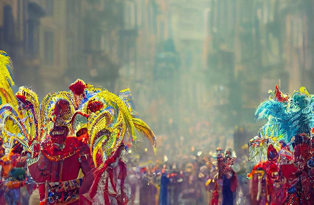 Karneval Umzug auf einer Straße Gemälde Illustration 01