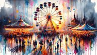 Bestelle dieses abstrakte Wandbild Karnevalslichter in der Abenddämmerung von Chromatic Fusion Studio als Reproduktion auf Leinwand, Alu-Dibond, als Poster, Fototapete oder Acrylglasbild.