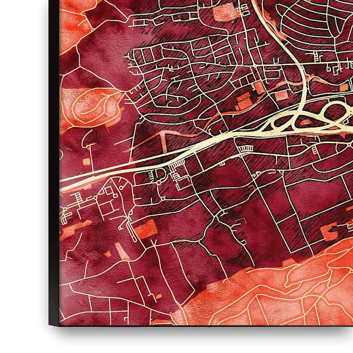 Bestelle dieses abstrakte Wandbild Karte von Aalen im stil 'Amber Autumn' von Maporia als Reproduktion auf Leinwand, Alu-Dibond, als Poster, Fototapete oder Acrylglasbild.