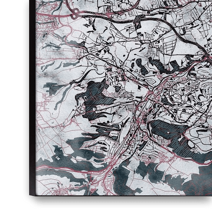 Diese Karte von Dresden trägt unseren maßgeschneiderten Stil „White Winter“. Die dunkelroten Straßen ziehen sich wie eine warme Arterie durch die kalte Winterlandschaft. Ein dicker weißer Schnee bedeckt die Felder und die Stadt, während die Vegetation ihre Blätter verloren hat und sich im Dunkeln auf den Frühling vorbereitet. Diese…