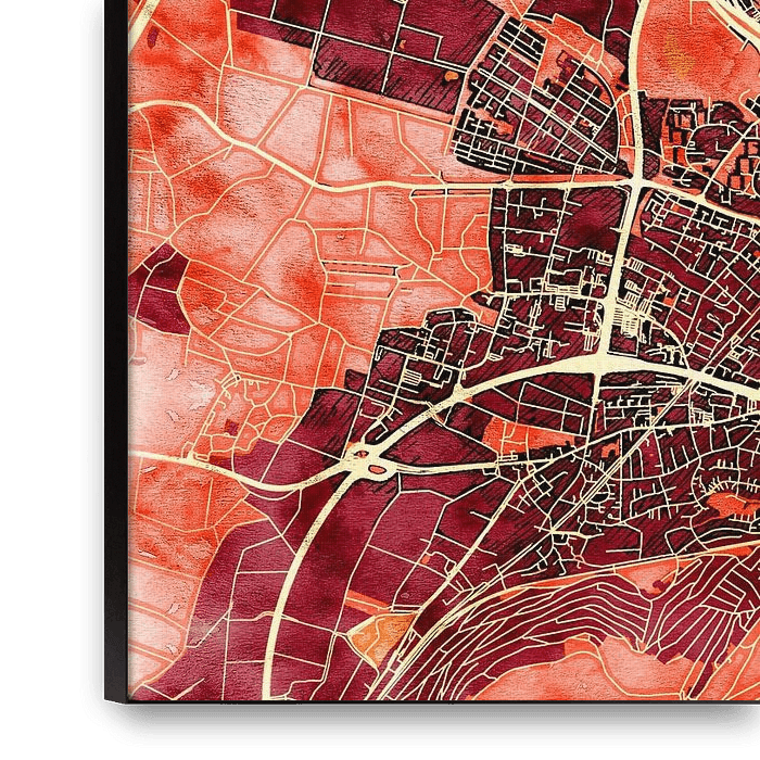 Bestelle dieses abstrakte Wandbild Karte von Freiburg im Breisgau im stil 'Amber Autumn' von Maporia als Reproduktion auf Leinwand, Alu-Dibond, als Poster, Fototapete oder Acrylglasbild.