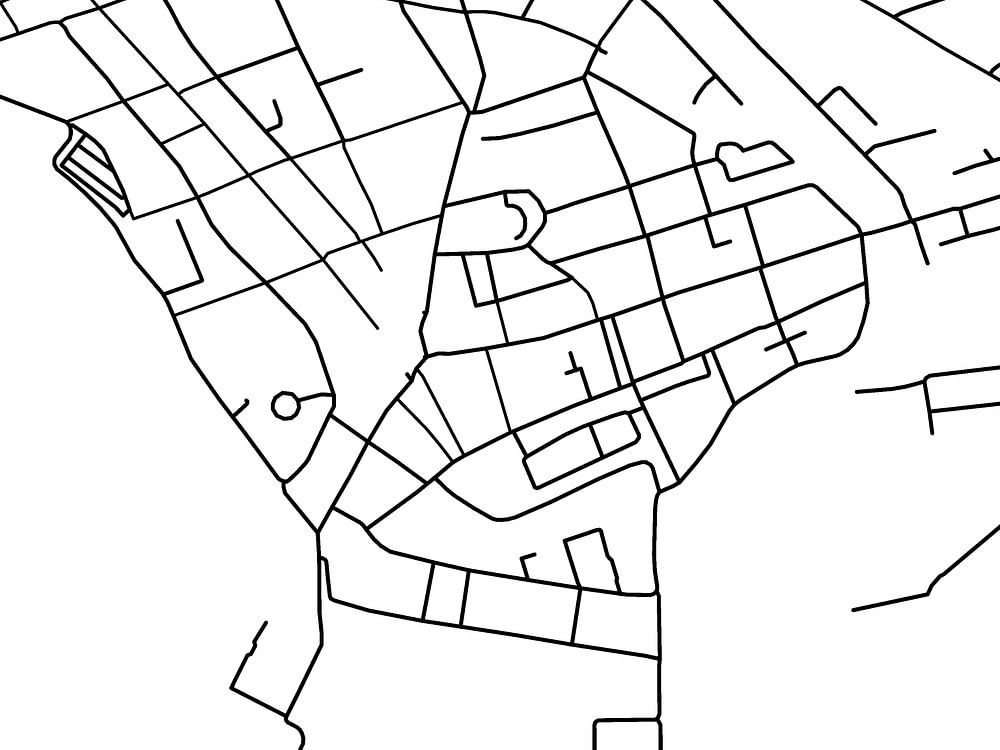 Die Karte von Hoorn Centrum mit weißem Hintergrund und schwarzen Straßen.