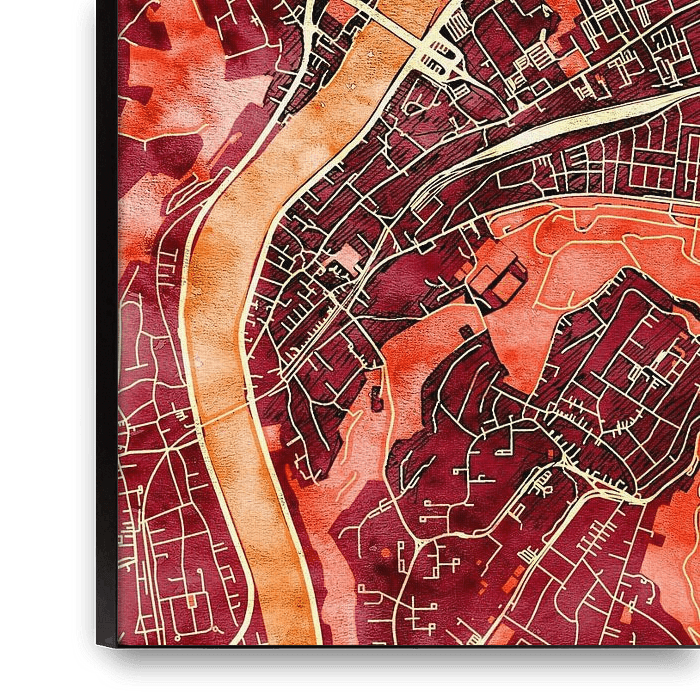 Bestelle dieses abstrakte Wandbild Karte von Koblenz center im stil 'Amber Autumn' von Maporia als Reproduktion auf Leinwand, Alu-Dibond, als Poster, Fototapete oder Acrylglasbild.