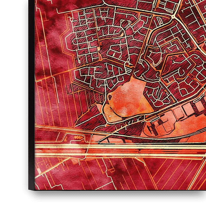 Bestelle dieses abstrakte Wandbild Karte von Woerden im stil 'Amber Autumn' von Maporia als Reproduktion auf Leinwand, Alu-Dibond, als Poster, Fototapete oder Acrylglasbild.