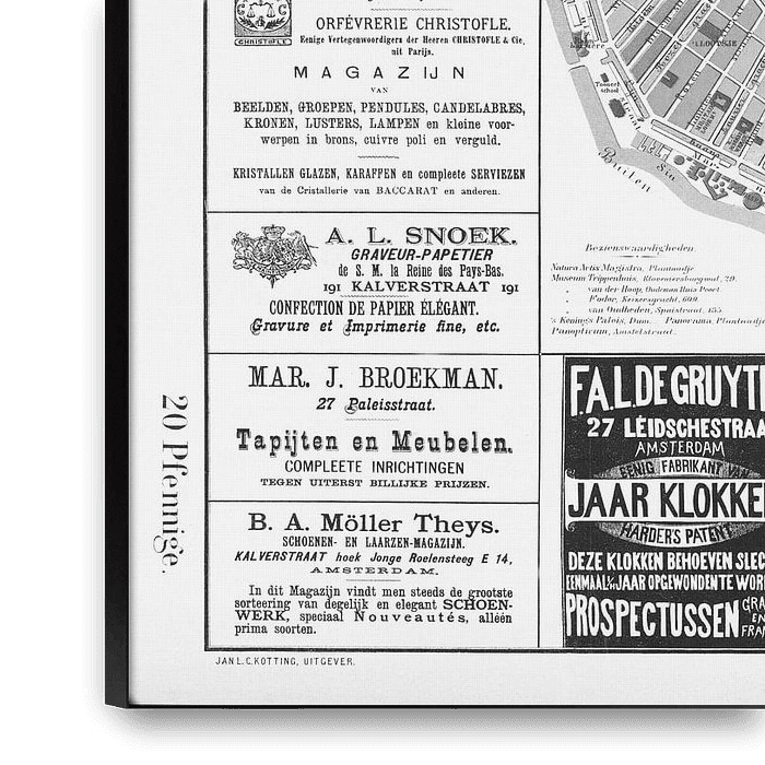 Bestelle das Foto Karten von Amsterdam 1883 Schwarz und Weiß von Hendrik-Jan Kornelis als Reproduktion auf Leinwand, Alu-Dibond, als Poster, Fototapete oder Acrylglasbild.