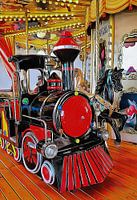 Bestelle dieses Popart-Wandbild Karussell Zug oder Pferd Reiten von Dorothy Berry-Lound als Reproduktion auf Leinwand, Alu-Dibond, als Poster, Fototapete oder Acrylglasbild.