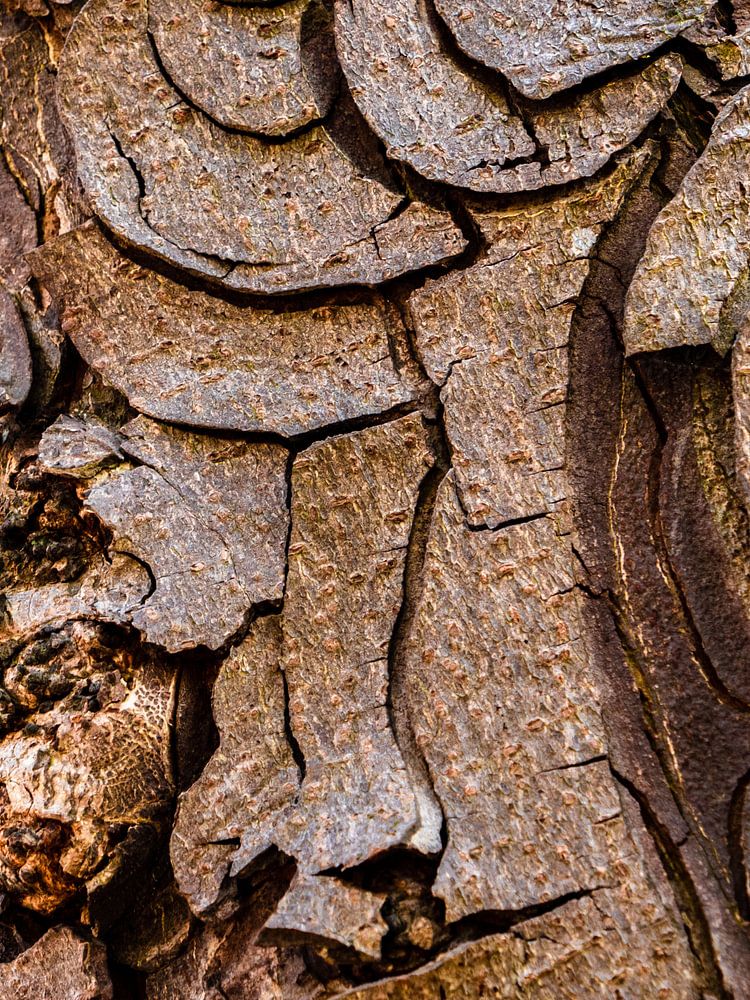 Ein einzigartiges Exemplar der schönen Struktur der Rinde eines Kastanienbaums.