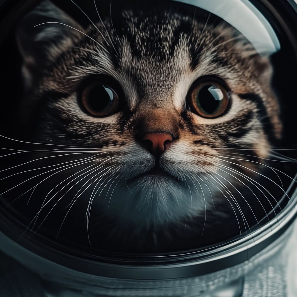 Das Katzen-Astronautenporträt ist ein eindrucksvolles und fantasievolles Kunstwerk, das die Grenzen zwischen Realität und Fantasie verwischt. Dieses Porträt zeigt eine selbstbewusste Katze in einem detaillierten Raumanzug, die vor einem mysteriösen, kosmischen Hintergrund schwebt.