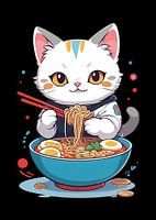 Bestelle das digitale Kunst Bild Katze isst Ramen von kangz003 als Reproduktion auf Leinwand, Alu-Dibond, als Poster, Fototapete oder Acrylglasbild.