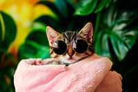 Katze mit Sonnenbrille im Handtuch von Poster Art Shop