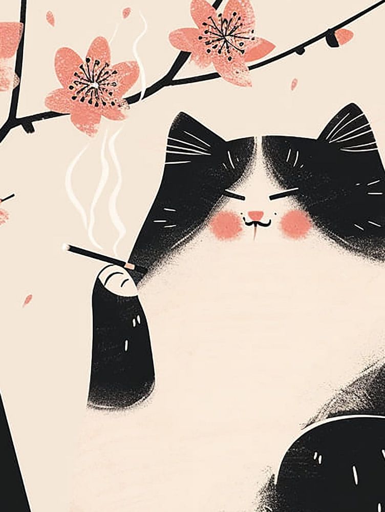 Dies ist ein Gemälde, das von Katzen inspiriert ist, die menschliche Rollen spielen.