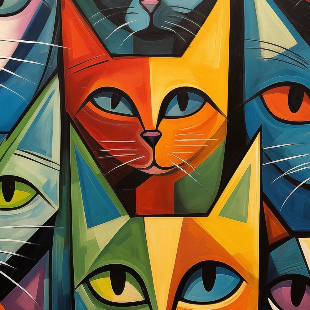 Abstrakte Katzen abstrakte bunte Malerei mit einem schönen und einzigartigen Stil. Mit schönen Farbtönen und einem einzigartigen Design ist dies ein stilvoller Fotodruck, der in jedem Raum gut aussieht. 100% einzigartig und originell!