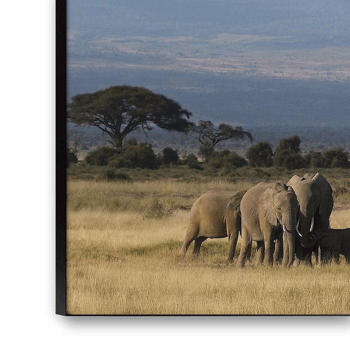 Eine der beliebtesten Landschaften ist der Kilimanjaro in Amboseli mit den Elefanten im Vordergrund, diese begehrteste Landschaft kann jetzt auch an Ihrer Wand hängen!