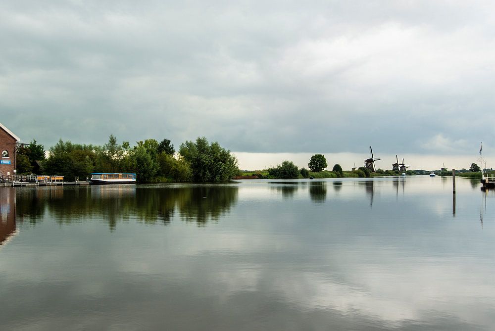 De kinderdijk is met z,n molens en water een toeristische attractie met mooie vergezichten.