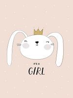 Kinderzimmer Poster mit lustigem Kaninchen Freches Kaninchen mit goldener Krone auf hellrosa Hintergrund Mit Text: It's a Girl Das ze Poster passt gut zu den anderen Postern dieser Serie. Hängen Sie sie zusammen auf oder verteilen Sie sie auf verschiedene Wände.