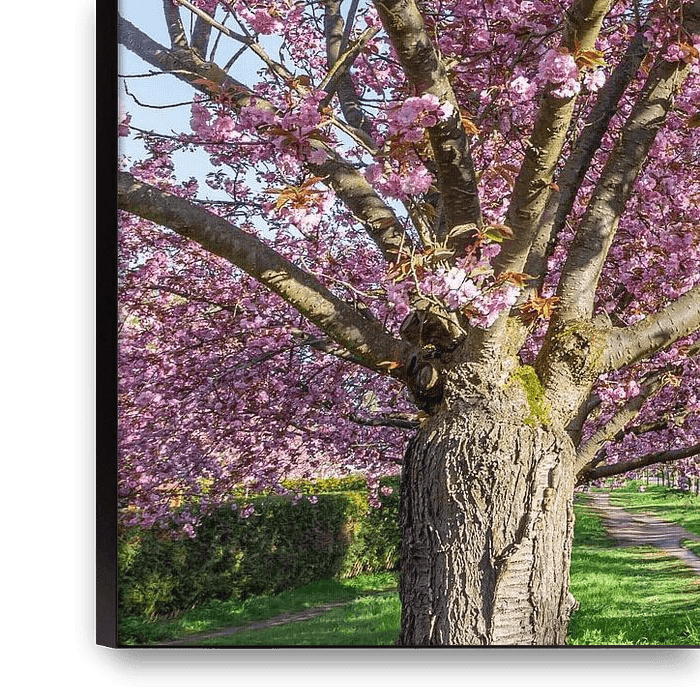 Die Zeit der Kirschblüte markiert den Anfang des Frühlings. Der Weg führt unter einem Dach von abertausenden von Blüten entlang. Eine idyllische Aufnahme zum Genießen.