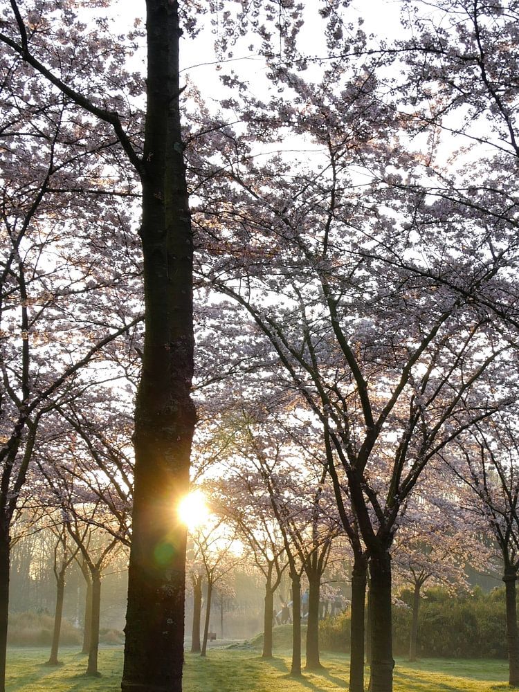 Japanische Kirschbäume stehen in voller Blüte