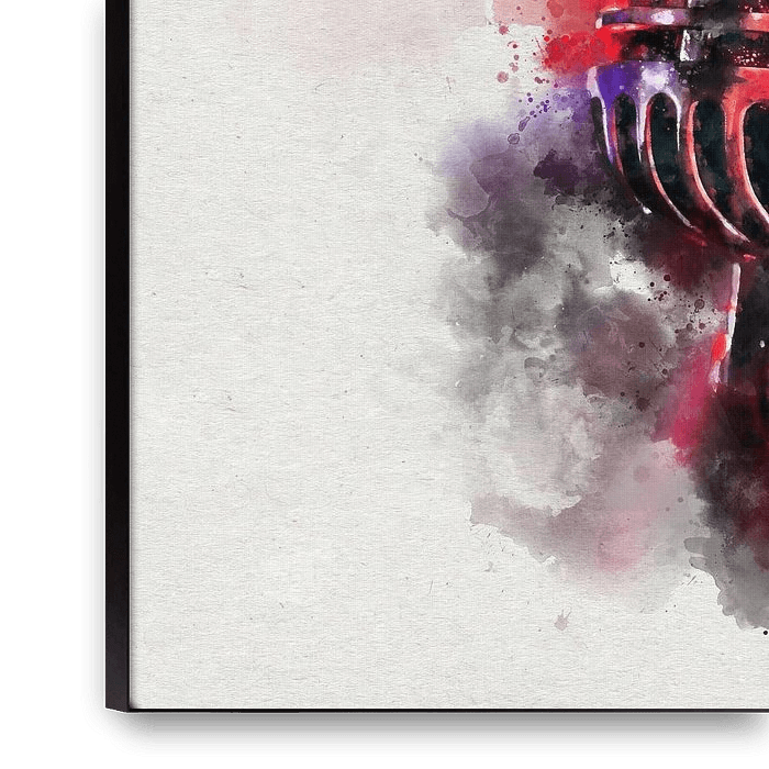 Bestelle das digitale Kunst Bild Klassische Vintage Chrom Mikrofon in bunten Aquarell von Andreea Eva Herczegh als Reproduktion auf Leinwand, Alu-Dibond, als Poster, Fototapete oder Acrylglasbild.