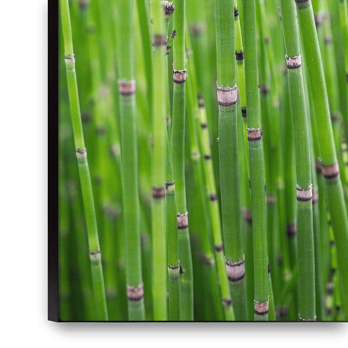 Grüner essbarer Bambus im Gemüsegarten des Schlosses Villandry in Frankreich. Schöne, sich wiederholende Muster in einem frischen Grün.