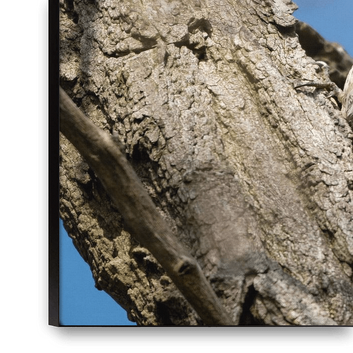 Bestelle dieses Landschafts-Wandbild Kleiner Buntspecht vor blauem Himmel von Johan Savelkoul als Reproduktion auf Leinwand, Alu-Dibond, als Poster, Fototapete oder Acrylglasbild.