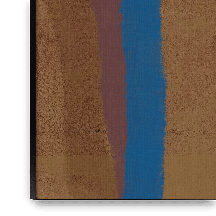 Bestelle dieses abstrakte Wandbild Kobaltblaue, violette, graue und braune Linien auf rostbraunem und terrakottafarbenem Untergrund. von Dina Dankers als Reproduktion auf Leinwand, Alu-Dibond, als Poster, Fototapete oder Acrylglasbild.
