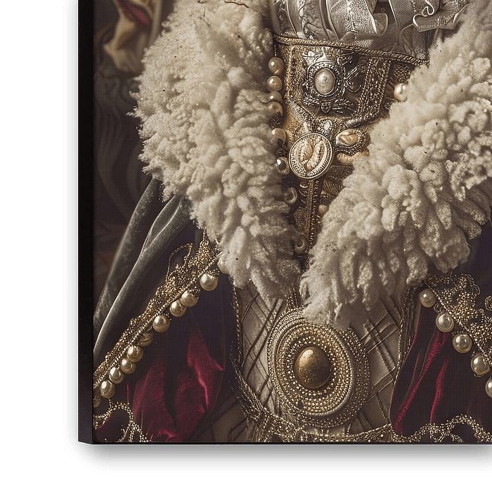 Dieses eindrucksvolle Kunstwerk zeigt ein Schaf in königlicher Barockkleidung, gekrönt mit einer prächtigen Tiara. Die detailreiche Darstellung, von der opulenten Spitze bis zu den edlen Verzierungen, bringt die Anmut und Würde des Tieres perfekt zur Geltung. Ideal für Kunstliebhaber, die eine Vorliebe für königliche Motive und barocke Ästhetik haben, und eine elegante und raffinierte Atmosphäre in ihren Wohnräumen schaffen möchten.