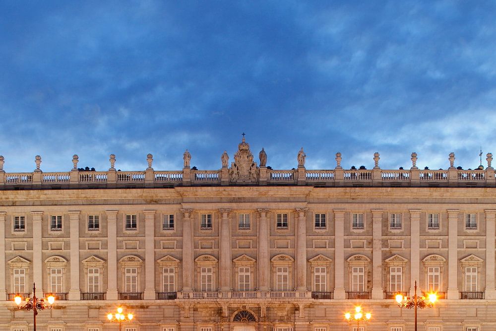 Königlicher Palast, Palast, Palacio Real, Plaza de Oriente, Abendämmerung, Madrid, Spanien, Europa
