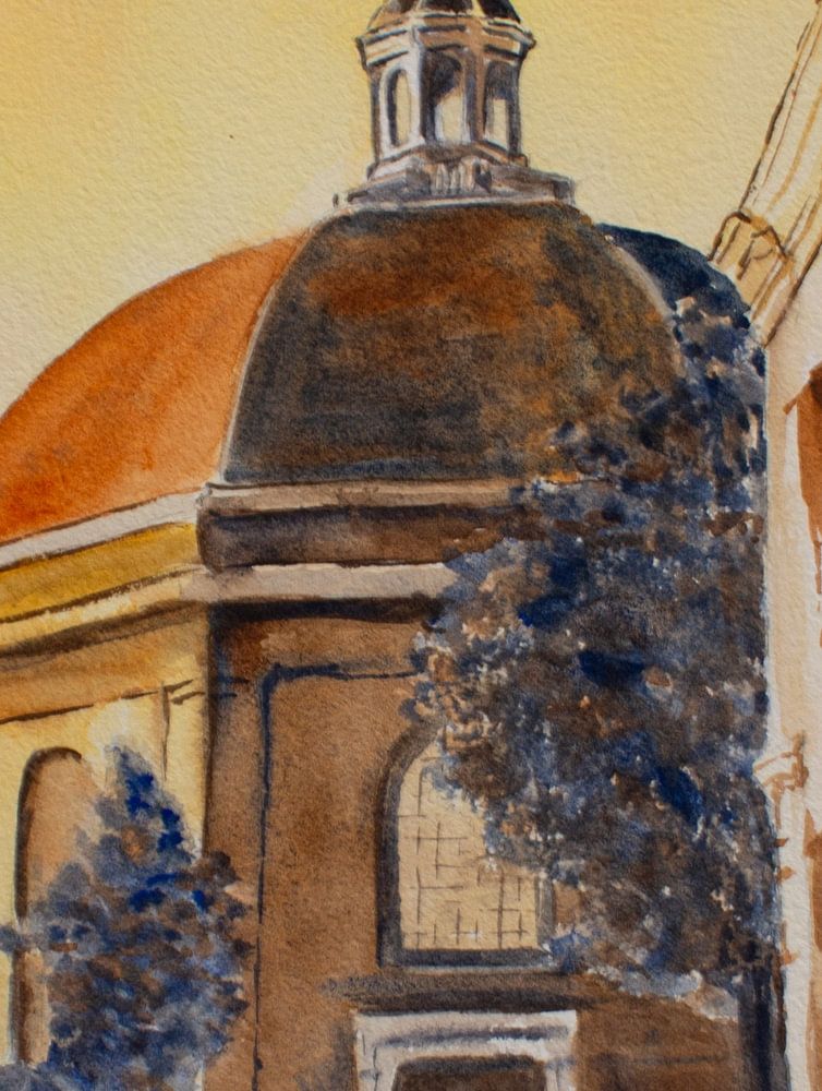 Aquarell, ausgeführt in warmen, verwandten Tönen.